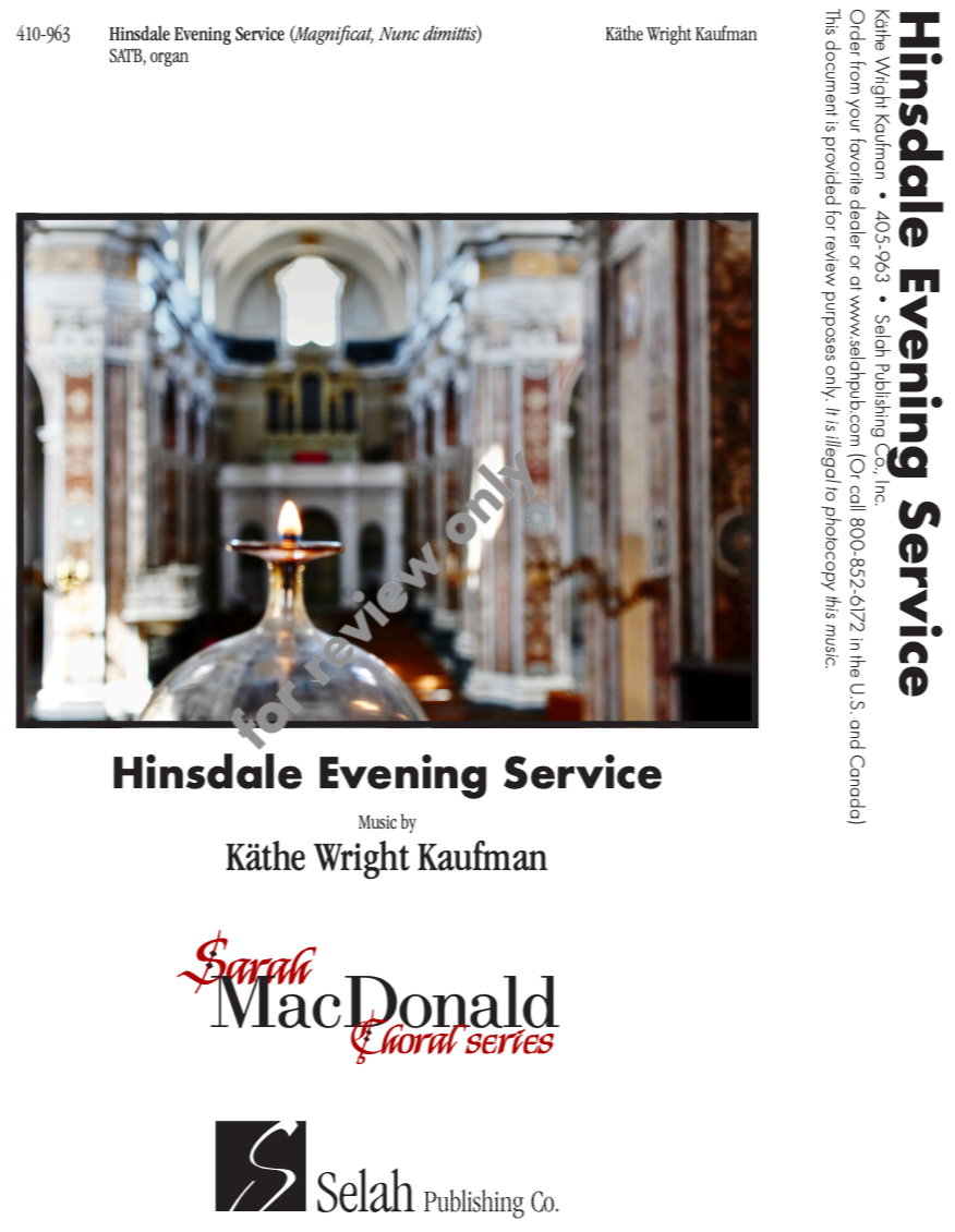 This setting of the evening canticles for SATB choir and organ was composed for Andrew Fredel and the Grace Choir, on the occasion of the sesquicentennial of Grace Episcopal Church in Hinsdale, IL. The movements are written in a similar style to the Preces & Responses and are meant to be both engaging and accessible for any choir looking to add a new setting to their Evensong rotation.